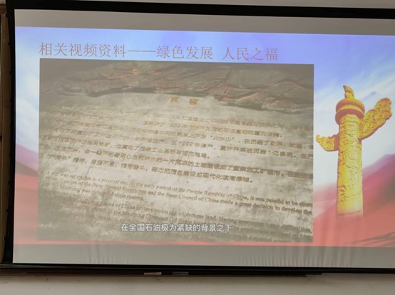 活动伊始,贾静媛同学对本次活动进行了概述,旨在通过各种形式的宣传和行动,号召广大青年积极参与到环保事业中来,以青春行动共同建设美丽中国。接着,张正龙同学受邀上台向大家阐述了我国的环境问题以及保护环境的紧迫性。在第二个环节,张译文同学播放了一段以“绿色发展,人民之福”为主题的视频资料,向同学们展示了绿色发展之美,激发同学们保护环境的决心。之后,翟乐文同学向大家展示了我国土地荒漠化的问题,呼吁同学们共同守护那份青绿。接着,张相燚同学为我们介绍了徐州废弃矿区蝶变绿水青山的故事,充分说明了绿水青山就是金山银山的道理,治理好环境的同时也能依靠环境获得财富。最后,唐瑞婕同学播放了微电影《炎冬》,呼吁同学们要低碳出行,减少空调的使用,以此来减缓全球变暖的趋势。