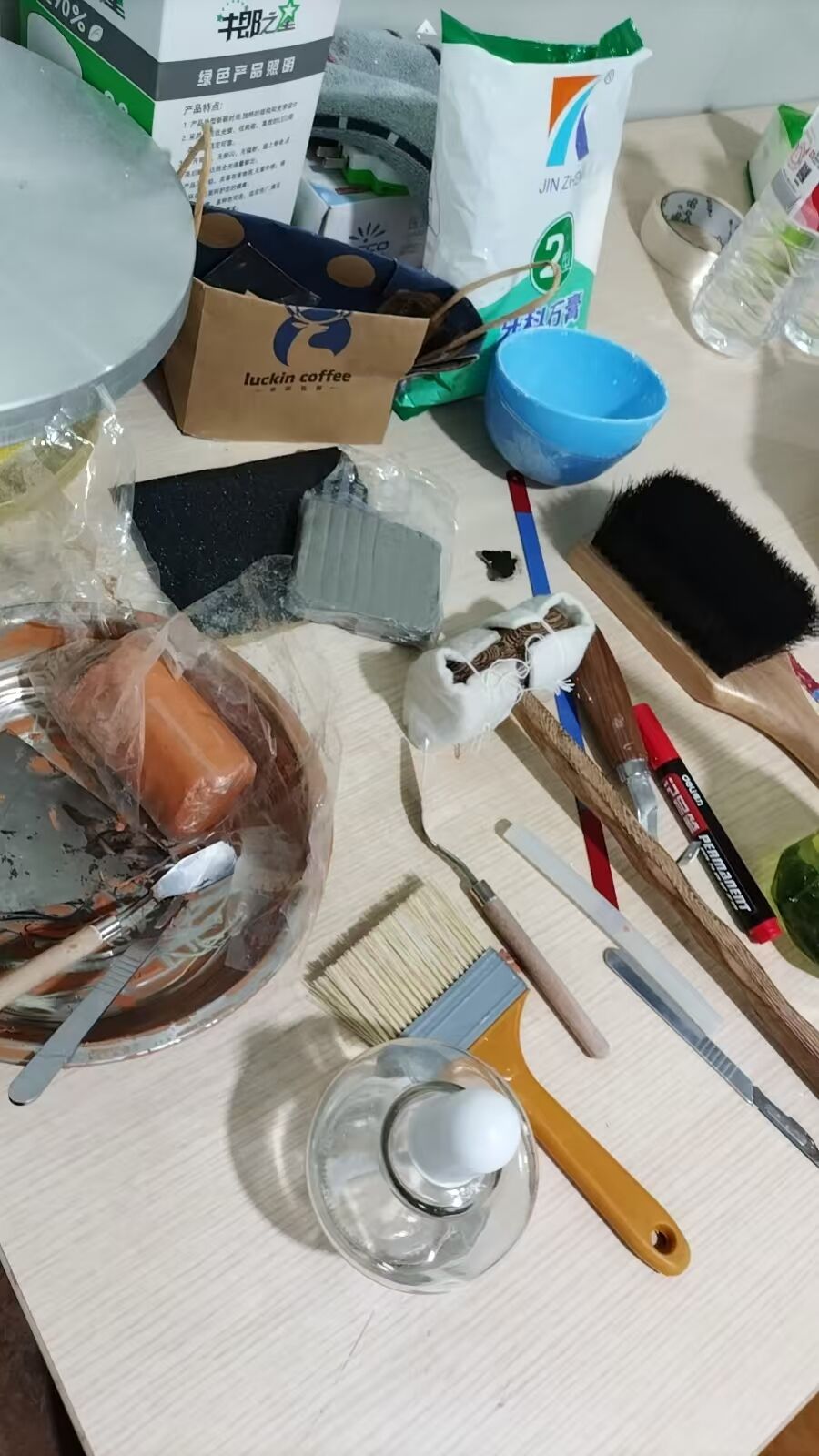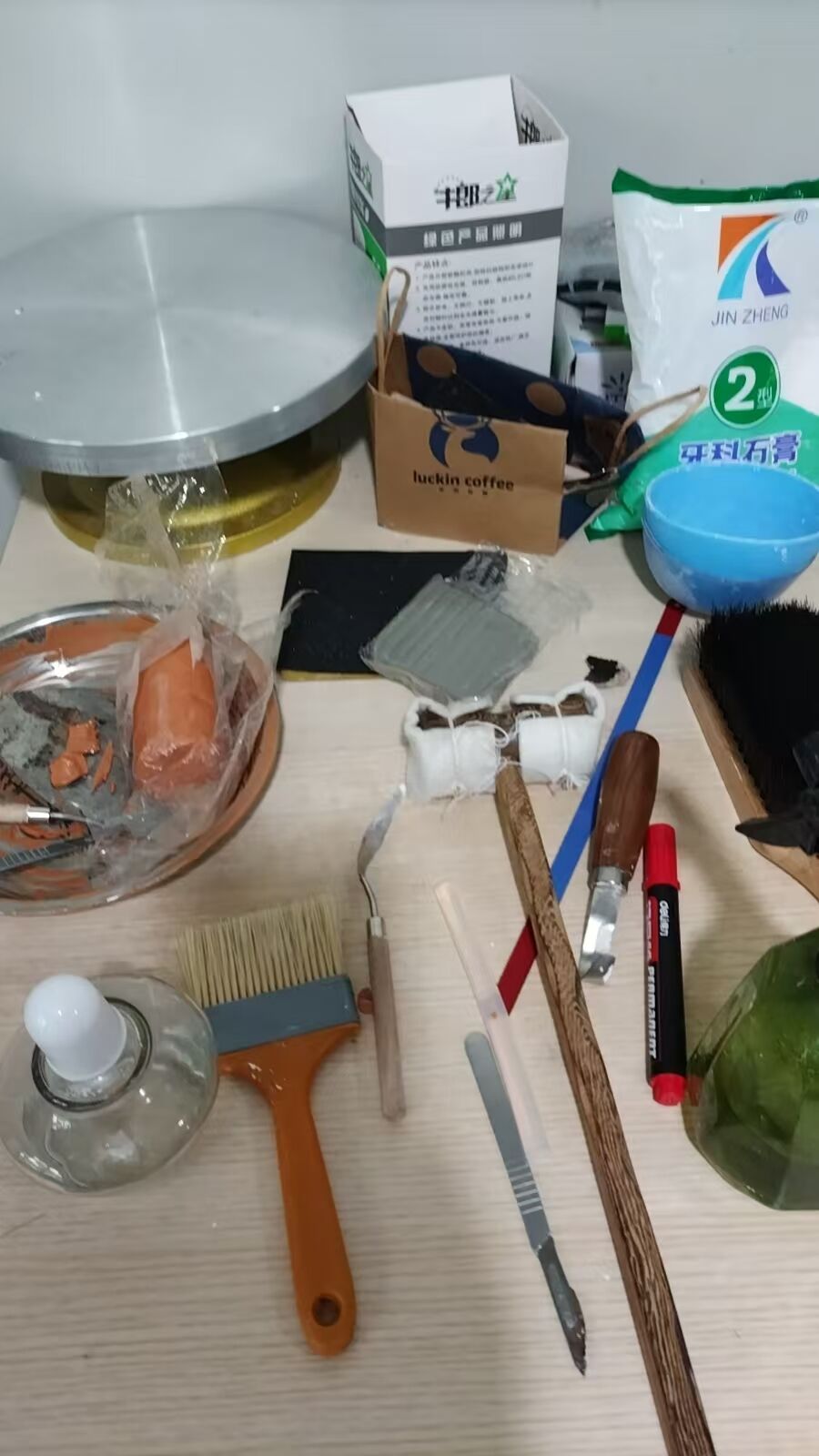 石灰膏、手术刀等