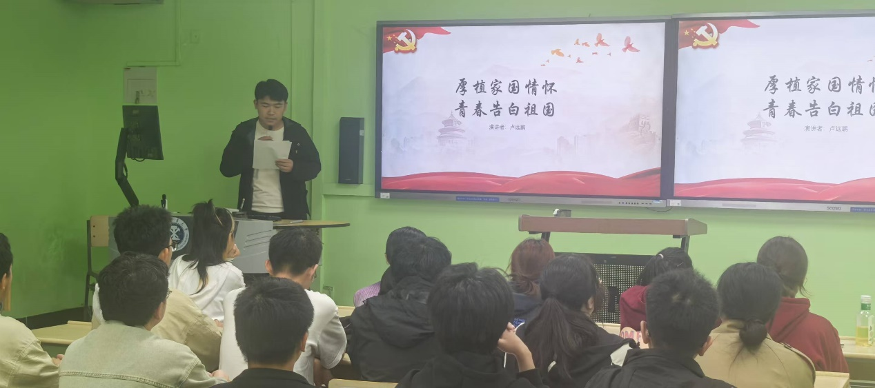 2024年10月18日晚七点,测绘四班召开了主题为“厚植家国情怀,青春告白祖国”的团日活动。活动伊始,伴随着庄严却又柔和的乐声,宋冰洁和卢远鹏同学以演讲的形式分别抒发了对祖国深切的热爱与赞美,对青年奋发有为的殷切期盼与呼唤;此后,蔡宇阳、周醒言和杨宛玉同学分别以ppt的形式,从党史、社会主义发展史和中华民族发展史,家国情怀的内涵与意义,如何厚植家国情怀,青春力量与担当等多个方面分享了自己的观点与思考。本次活动成功地增进了同学们的爱国主义情怀,点燃了同学们发奋建设祖国的热情,让同学们将个人理想融入国家的发展方向,在为国家和人民的不断奉献中书写人生。