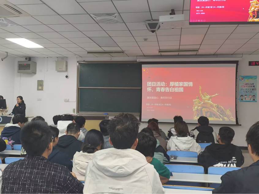 积极开展"厚植家国情怀,青春告白祖国"主题团课,2024年10月22日,环境科学与工程类24-1和24-2班在博1-B203开展主题团日活动。
