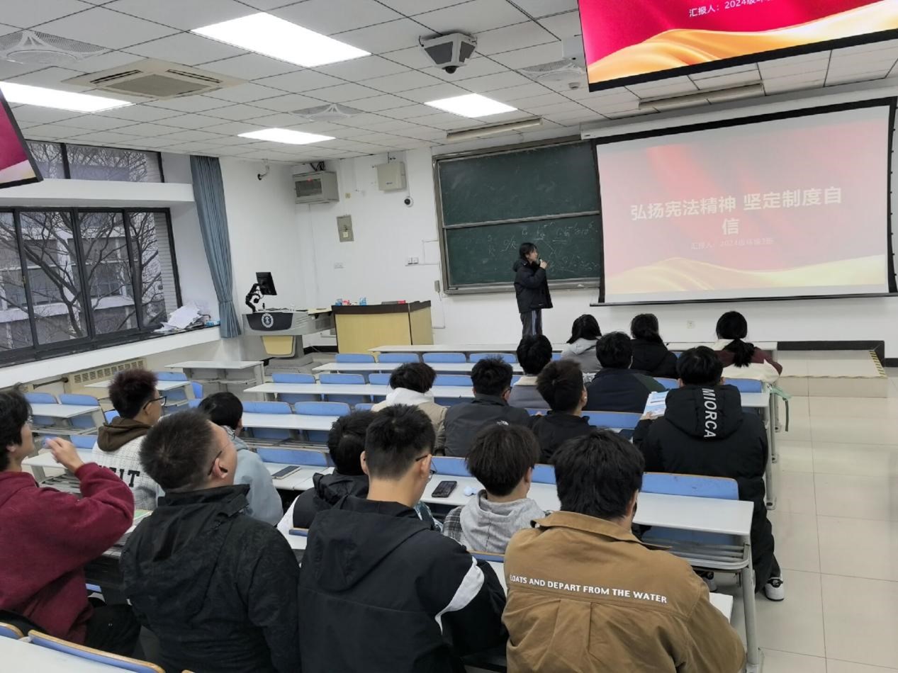 环境科学与工程类24-3班在博1-B202开展“弘扬宪法精神 坚定制度自信”主题团日活动。