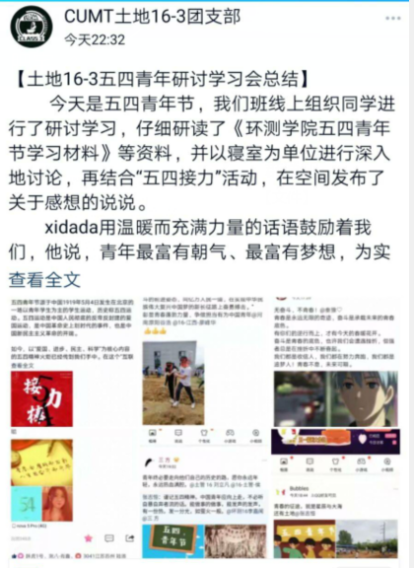 土地16-3班于5月4日在线上组织同学参加了“五四青年”研讨学习会。
