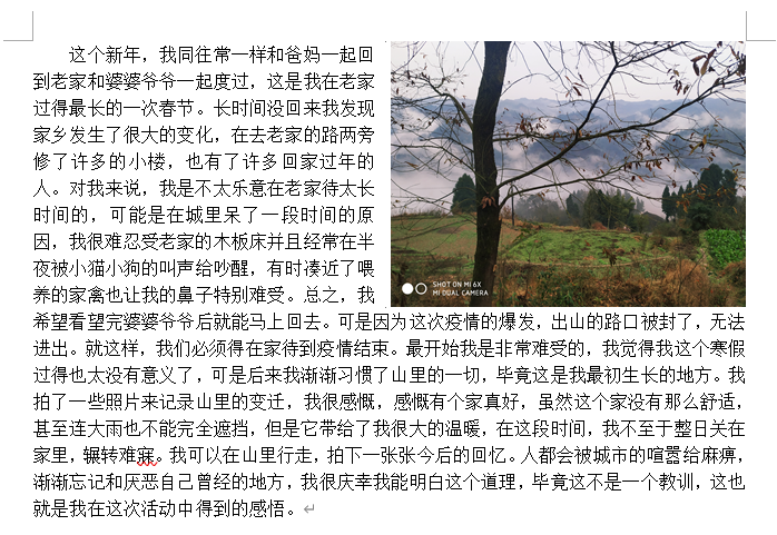 因为新型冠状病毒肺炎疫情的来临,2020年注定是不平凡的一年,全国上下都陷入了一片紧张之中。大多数的同学都待在了家中成为了宅男宅女,他们观看了各种类型的影片并得到了诸多感悟。有的影片让同学们感受到了时光短暂,人生不易;有的让同学们感慨祖国的强大,面对困难时的超强举措,加强了对这次“战疫”胜利的决心;有的也让我们坚定了对梦想的执着,对挫折时的不屈;正是这些感悟让我们的寒假变得丰富和温暖。也有同学表达了对于家乡的感激和热爱。家永远是自己的避风港,在灾难面前保护自己周全,家乡的每一寸故土都充满了生机。祖国则是我们每个华夏儿女的家,是他一直在保护我们不受疫情的侵害,当所有的华夏儿女团结一心,我们就能如新闻播报里所说,战胜疫情,重新迎来那个人潮涌动的时刻。