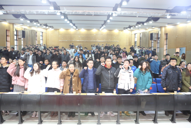学生会主席寇玉珂同学上台带领大家进行宣誓,誓词中提到:“我将树立正确的人生理想和远大的成才目标,爱国明理,遵纪守法;态度端正,志存高远。成为有理想、有作为、与时俱进、适应现代社会发展的综合性人才。”而其中所蕴含的就是当代青年人、当代大学生所应该具有的品质,宣誓内容切切实实地贴合了本次大赛的爱国主题,同学们慷慨激昂,也将本次决赛的气氛推向高潮。随后,正赛阶段正式开始,展示顺序按照17、18、19级顺序进行,本次决赛的赛制形式包括班级风采展示和爱国纪念展示两部分,风采展示部分,由本班班长对本班的班级风貌和学风建设进行ppt讲解或者视频展示,以此来凸显本班的学风特色和学习风格。在17级同学们展示全部完成之后,由韩福顺老师率先进行点评,他对17级同学们的展示表示赞许,并表示看到了同学们的用心,希望接下来18、19级的同学们能够表现得更加出色。陆雨老师对随后18级的展示作出点评,他指出了同学们在展示过程中包括时长、台词等几个方面的问题并给出了自己的建议,希望同学们在以后的活动中能够表现得更加优秀。本次大赛的重点展示即为爱国纪念展示,而直播露点