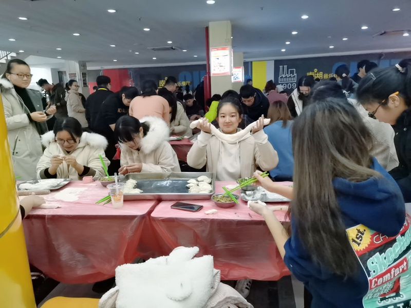 12月22日上午8时,负责活动的同学们提前来到二食堂一楼准备面团、面粉、馅儿等相关食材。8时30分,参加活动的同学们有序来到现场,活动正式开始。各组同学充分利用自己的材料,对材料进行不同程度的糅合,包出自己与众不同的饺子。现场气氛活跃,热火朝天,同学们个个喜气洋洋,都体验到了包饺子的愉快时光。与此同时,同学们拍下自己独特的饺子留作纪念。活动最后,同学们包的所有饺子统一拿到食堂窗口烹煮,让同学们之间互相品尝饺子的味道。
