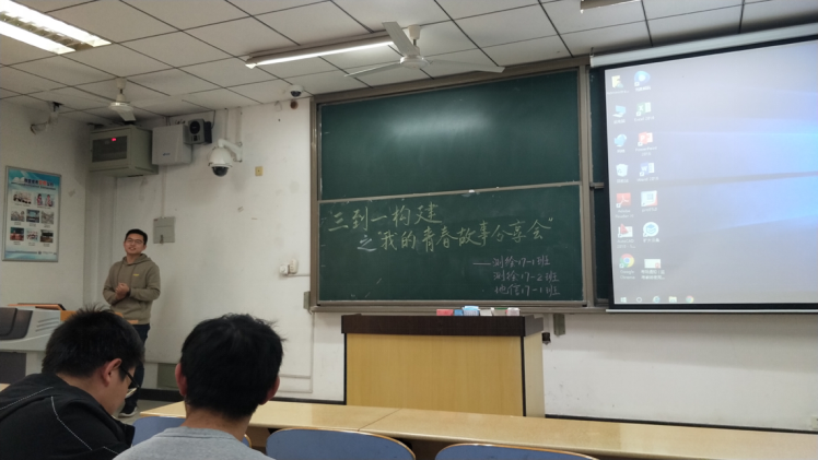 测绘17-1班、测绘17-2班以及地信17-1班于博四召开了“三到一构建‘我的青春故事分享会’主题团日活动”。兼职辅导员陆雨老师到场分享了他的青春故事。