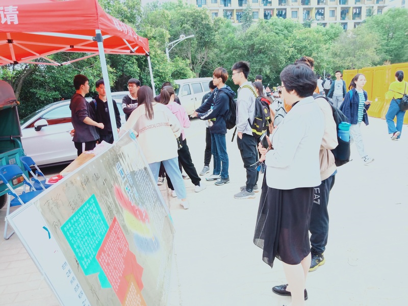 心理自助中心紧紧围绕今年的主题制定了相关的宣传海报以及宣传单,并在桃苑餐厅门口设立了数个帐篷供同学们在展板上签字留念。直播露点