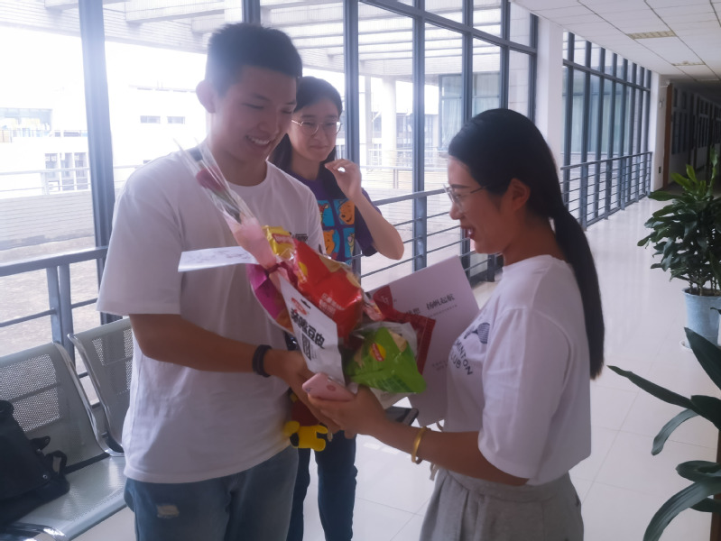 下午5点,在学生会寇玉珂同学的带领下,学习部成员为老师献上贺卡、鲜花及祝福语。手捧鲜花,老师们感受到了作为教师的职业荣誉感,那一束束鲜花也将鼓舞老师们在教育事业上勇攀高峰。