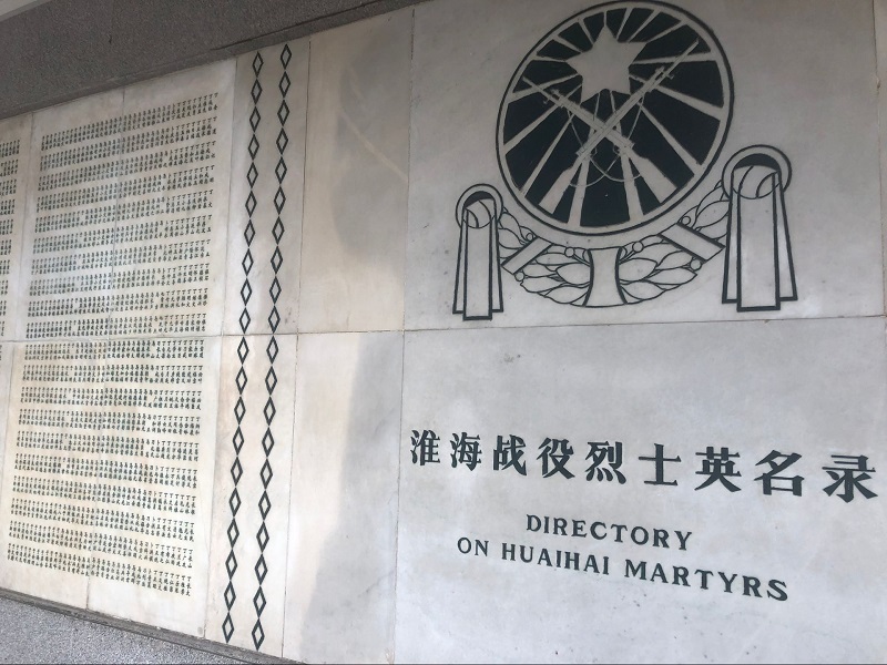 上午8点,小队成员瞻仰了高高矗立的淮海战役纪念塔并重温了入党誓词。随后,实践团成员沿着台阶逐级而上,参观了长廊上的《淮海战役烈士英名录》以及《党和国家领导人题词》,看着在淮海战役中牺牲的烈士的名字以及国家元首及当时的将领题词,令成员们感慨良多。接着,小队成员访问了当地的工作人员,在采访中我们了解到,在平常的工作中他们很乐意与游客一起分享他们所知道的淮海战役的小故事并为传播淮海战役的精神贡献自己的力量。最后,小队成员交流了自己的想法和体会,准备开始下一阶段的工作。