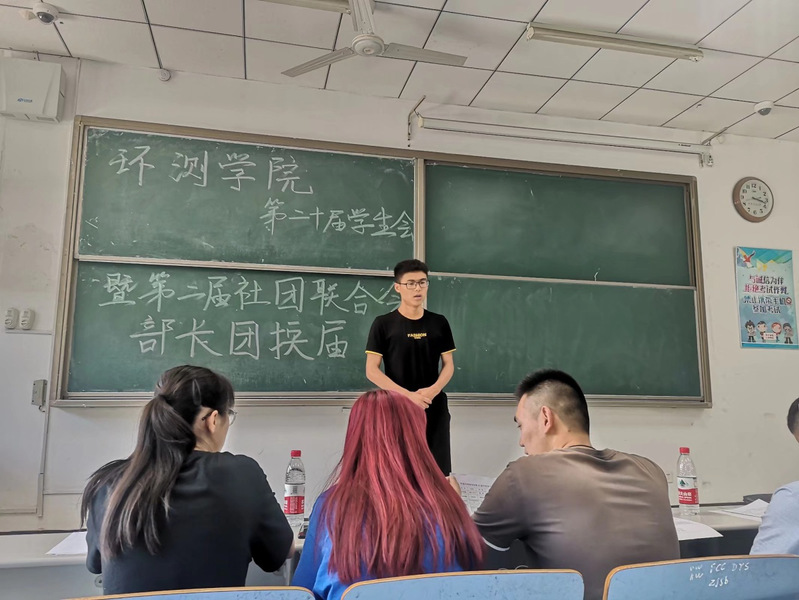 下午2时,参与竞选答辩的同学陆续入场签到并为自己的竞选答辩做最后的准备。在主持人介绍各位到场评委并由环测直播露点