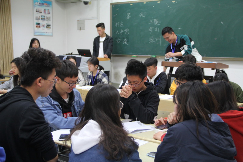 晚七点,在主持人讲解相关规则后,活动正式开始。本次活动以沙漠生存及掘金为背景,各队根据各自物资、资金情况展开讨论,进行每一次的决策。在每一轮决策后,由决策人将所书写的报告交给监督员以记录,并依据所撰写决策上台进行大地图的路线变换。随后,在监督员公布电脑软件所随机生成的各步点的天气情况后,各小组人员根据不同的天气情况进行下一轮的决策。活动共计25轮,其中物资耗尽的队伍则提前中止比赛。最后在数据统计完成后,由主持人宣布比赛结果。