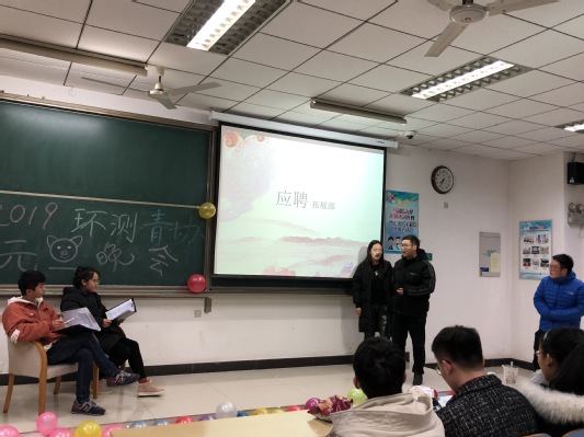 下午7点,元旦晚会正式开始,主持人向到场的同学们介绍参加此次晚会的主席团成员,并向大家简单说明了本次元旦晚会的流程,随着开场表演话剧《应聘》的表演,晚会的节目表演正式拉开了帷幕,各部门成员按照节目单依次进行表演展示,表演类型繁多,有《大圣归来》、《矿大外传》等幽默风趣的小品,有吉他弹唱和朗诵等打动人心的节目,也有代有着青协特色的手语表演。同学们精致的道具、诙谐的语言以及充满创造力的情节吸引着观众的目光,带来一场场视觉盛宴,将晚会的气氛推向高潮。其中,在晚会节目表演的期间,进行了趣味游戏环节,办公室成员为烘托现场气氛,将许多游戏改编,带有原创色彩,像“眼色游戏”等,所有成员积极参与,专注的神态与搞笑的动作令观众捧腹大笑。最后,环测直播露点