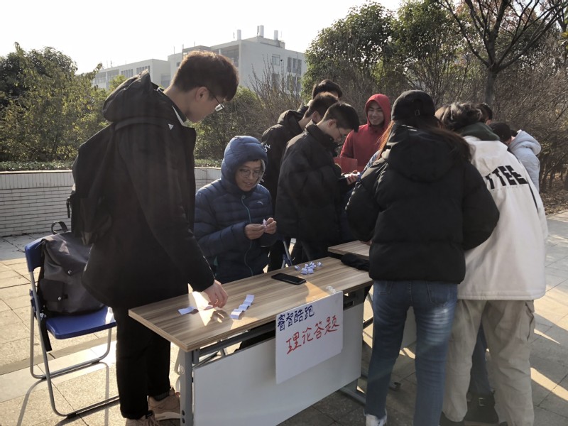 此次活动以为理论学习为主题开展,采用马拉松的形式,途中设立了答题关卡和活动关卡,参赛选手以四人一组进行比赛,于图书馆门口设立的大本营处进行统一签到后,由工作人员统一讲解比赛规则与注意事项。上午10:20,在裁判员的一声号令下,直播露点