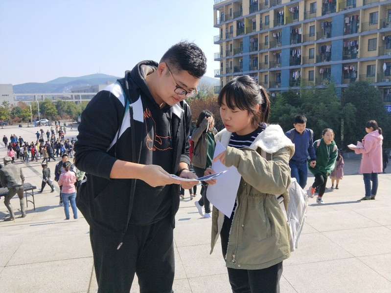 生活权益部干事们聚集于二食堂广场,在分工安排后,投入到活动宣传中。期间,宣传人员向同学们发放传单并介绍活动的参与形式和意义,并及时做好报名人员的登记工作。现场同学们积极报名参加比赛,并有同学加入活动事项咨询群,来进一步了解本次活动的详细内容。