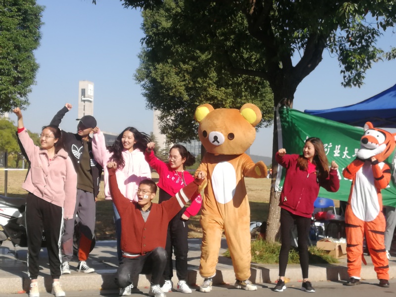 的志愿者工作也在如火如荼地进行着,上午七时许,志愿者们就准备好了桌子、帐篷、饮料和水。此外,为了缓解参赛选手们紧张的情绪,志愿者们还精心准备了老虎及小熊玩偶。上午8点30左右,随着第一位参赛选手的到来,志愿者们开始了紧张、忙碌的服务工作。志愿者们热情的给运动员分发水和食物,同时还有志愿者以击鼓的方式为运动员助威、加油。上午11点左右,马拉松比赛接近尾声,但志愿者们仍毫不松懈,积极进行着加油站卫生的清扫工作。11点半,志愿者们完成了所有的工作。