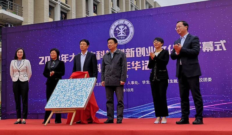 活动伊始,在主持人做了简要的介绍后,陈文老师和纪承老师分别对“挑战杯”课外学术科技竞赛和创新创业之星寻访、巡讲的活动方案做了简短的介绍。随后,徐黎华老师和钟晓老师宣布了青创广场入园名单和国家级大学生创业训练实践项目立项名单。在热烈的掌声中,曹德欣副书记、袁迎菊老师为各项目代表颁发证书。随着时间的推移,活动逐渐进入尾声。开幕式最后,举行了本届大学生科技创新创业文化节的启动仪式。各位嘉宾共同上台,为本次活动由魔方制作而成的二维码揭幕。本次开幕式正式结束。接下来,曹德欣副书记带领各位嘉宾参观了各直播露点