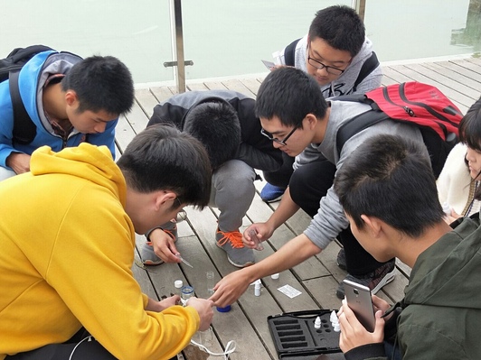 下午1点30分,部门成员在北门集合前往云龙湖。到达后,组织人员有条不紊地开始指导部员分组行动。首先,取水员在保证取水间距适中的前提下完成了取样。紧接着是测水员使用测水设备正确检测水样各项性质,并有记录员在旁一一记录。同时,信息组成员在起点及沿途拍照、录像,及时在多媒体平台上发布相关动态。活动过程中,组员通过实践了解了各项水质指标超标的影响,认真记录了黑臭河对当地居民的生活影响,认识了河流在生态环境中的重要性。实习调研结束后,部门进行信息汇总,组员分享心得交流。
