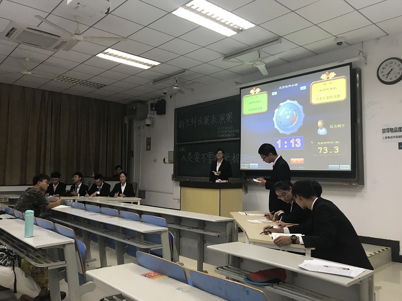 学生会于博学一号楼C102举办了2018级新生辩论表演赛暨环测直播露点