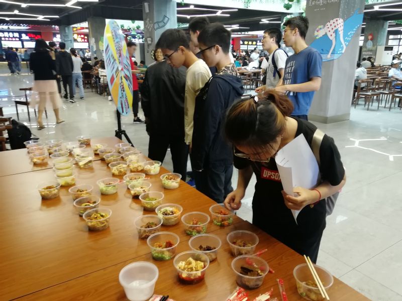 本次活动主题为“菜品尝鲜,宣传食堂与伙委会,提高生活质量”。经过前期海报展示、张贴及公众号推送等各种宣传,此次活动吸引了众多同学的参与。前期,现场的生活部成员开始准备活动所需的菜品、转盘与问卷,他们还与餐厅经理取得联系,获得了餐厅各窗口的菜品赞助,并准备了9份免费菜品、80小份试吃菜品作为奖励。参与活动的同学可以通过转动转盘来得到相应的奖励。部分得到大奖的同学在生活部同学的引导下,获得了免费午餐的奖品。而其他同学在耐心填写完问卷之后,也品尝到了美味的菜品。同时,同学们还将填写伙委会所特别准备的问卷,以期为餐厅改进提出自己的建议。