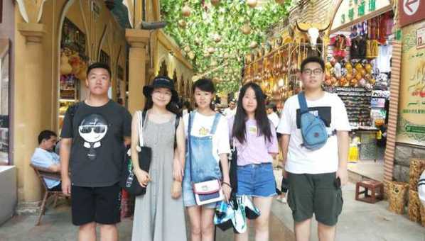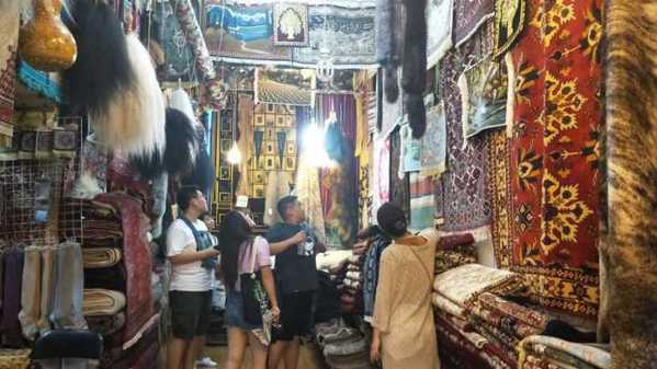 实践活动在新疆巴扎和昌吉回民小吃街展开。“巴扎”系维吾尔语,意为集市,农贸市场,它遍布新疆城乡,此次实践团来到的是位于丝绸之路中段的规模最大的新疆国际大巴扎。期间,团队在一家民族乐器店里,热情的维吾尔族大叔用都塔尔弹奏着欢快的小曲同时为队员们讲解演示了手工制作都塔尔即“维吾尔族乐器之母”的过程。同时,爽朗的大叔还指导了成员如何弹奏出轻快的手鼓,天山人民的热情爽朗体现无疑。绚丽多彩的丝绸也是少数民族的特色文化之一,美丽的维吾尔族姑娘坐在织布机前,耐心的在经纱上扎结,进行分层染色,巧手的姑娘将绸布缓缓浸入染液,在染液的渗润下,形成了自然的色晕,疏散而不杂乱,既增加了图案的层次感,又形成了艾德莱丝绸纹样富有变化的特点。