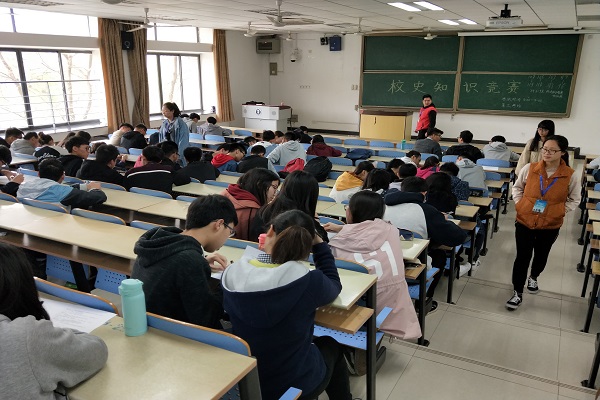 此次校史知识竞赛初赛以笔试形式进,参赛人员可自行组队,三人一组以集体形式进行。初赛考试时间为两个小时,每个考室安排有4位监考员,选手需要在不借助手机的前提下完成试题,初赛成绩前百分之三十可晋级参加决赛。