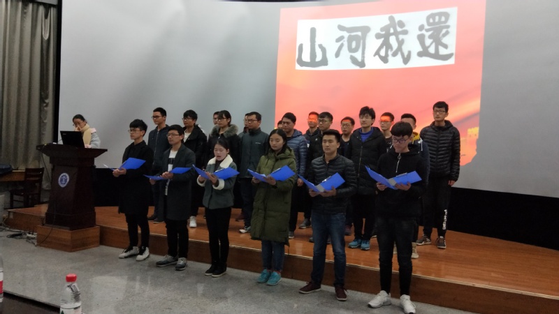 举办的“12.9”爱国纪念班级风采展示决赛,决赛现场由蒋怡然同学主讲班级风采展示PPT,班长张玉环、团支书杜奥迪等六名同学带领全班朗诵爱国诗词《还我河山》。