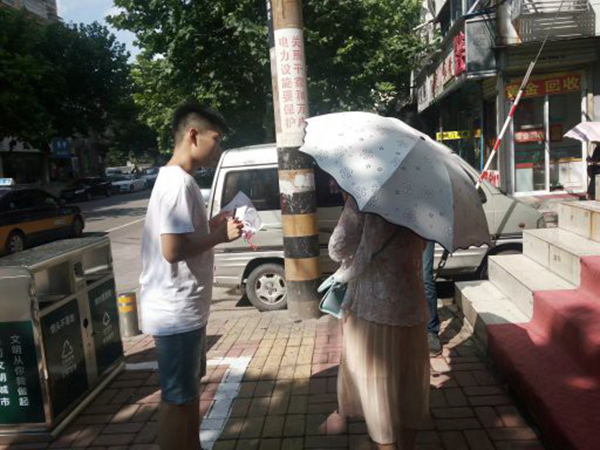 环境15-4班召开工作总结会议,各分工小组汇报工作结果,分析线下走访调查总结,整合线上调查问卷结果。  同学对市民进行随机采访 会议中,暑期实践团的采访组、视频拍摄组、宣传组以及数据分析组负责人分别汇报了七月份以来的小组工作。其中,采访组在徐州当地收集“居民用水情况调查”数据100余份,线上调查问卷数据收集300余份。同时,在走访调查期间,视频拍摄组拍摄并制作“降低‘水足迹’,共创节水家园”宣传视频一部,并在QQ空间等平台进行发布,在同学间产生积极影响。实践活动期间,宣传组随时跟踪报道实践团动态,记录实践过程中的点点滴滴,积极拍照记录并采写新闻,将实践动态及时发布,并与共青团直播露点