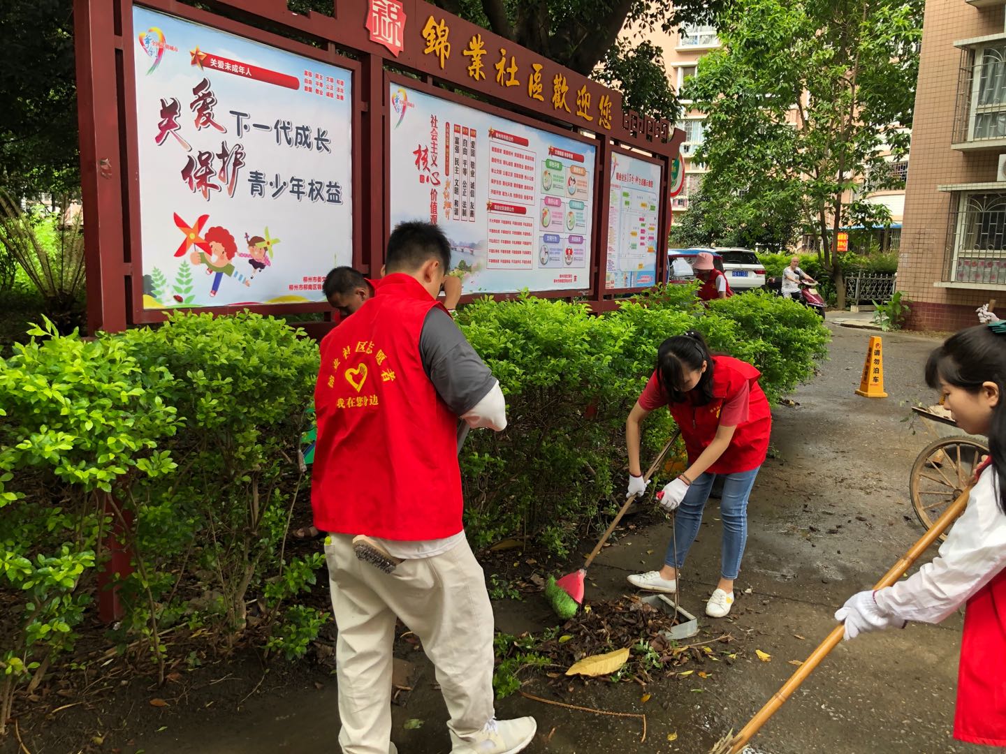 学子韦旋薇同学作为一名创城志愿者,前往柳州市柳南区,参加锦业社区组织的“共创美丽城市,社区垃圾清零”社会实践活动。