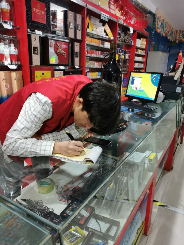 实践期间,实践人员在县城居民在线上下单后,会接收到相应的订单。而他们会在第一时间将所受到的订单抄录。然后去超市将订单上所需要的物品找齐,如有所缺,便会联系相应的配送部门,等货物配送到位,卸货完成后将订单配送完全并移交对应的志愿者配送人员,送货上门,完成相应的订单。实践人员需要配合超市工作人员,积极展开疫情防控与排查工作,在大型超市的入口设立了体温监测平台,为来访人员必须进行体温监测,合格后方可进入。