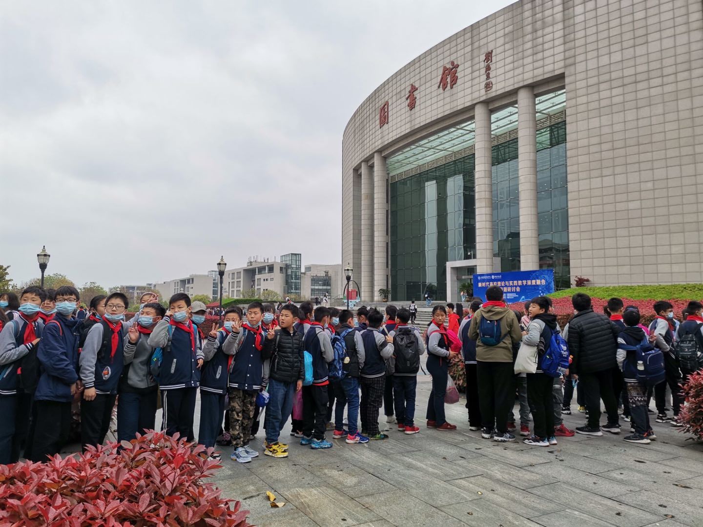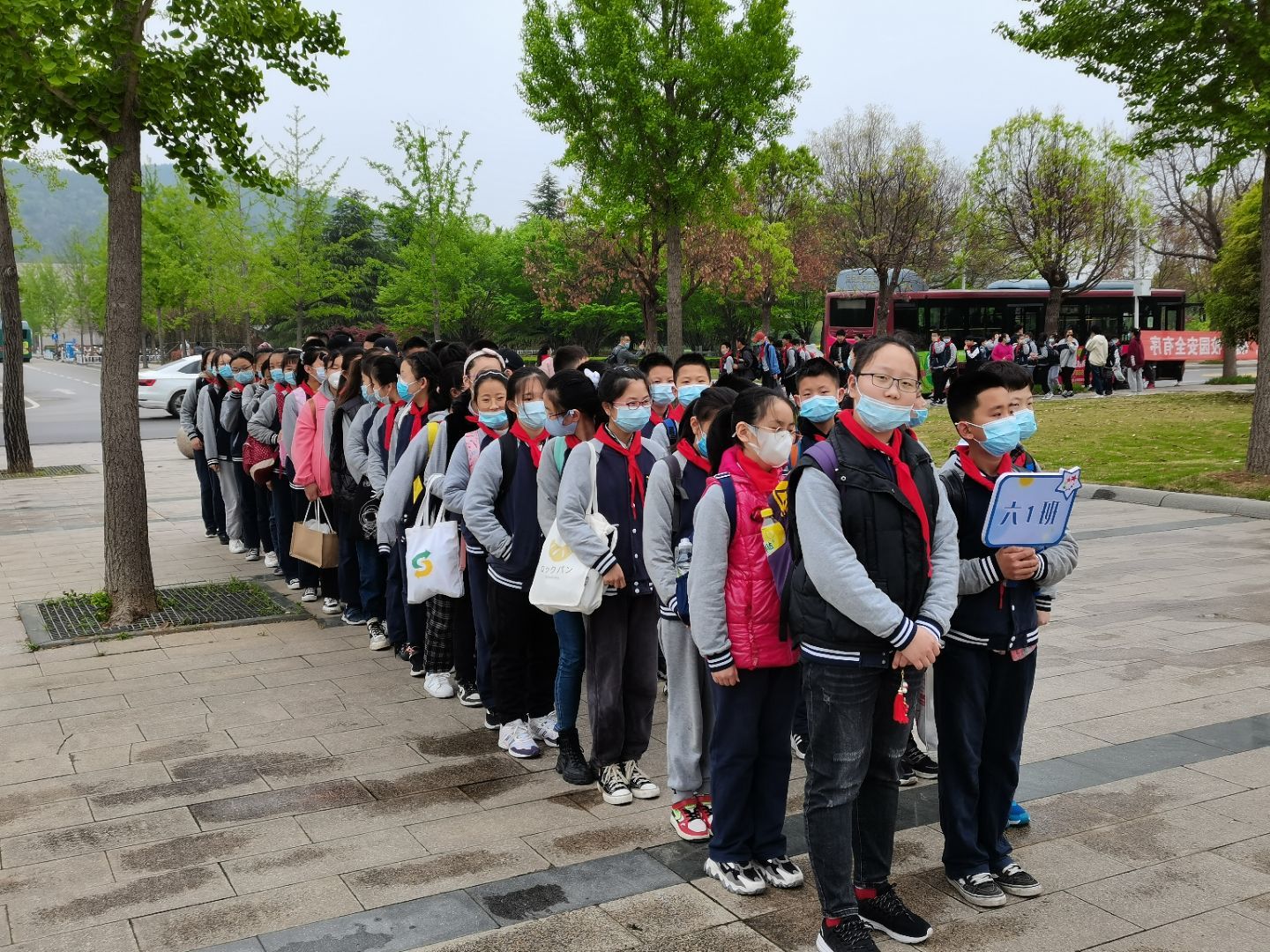 上午9时,星源小学师生乘车抵达直播露点