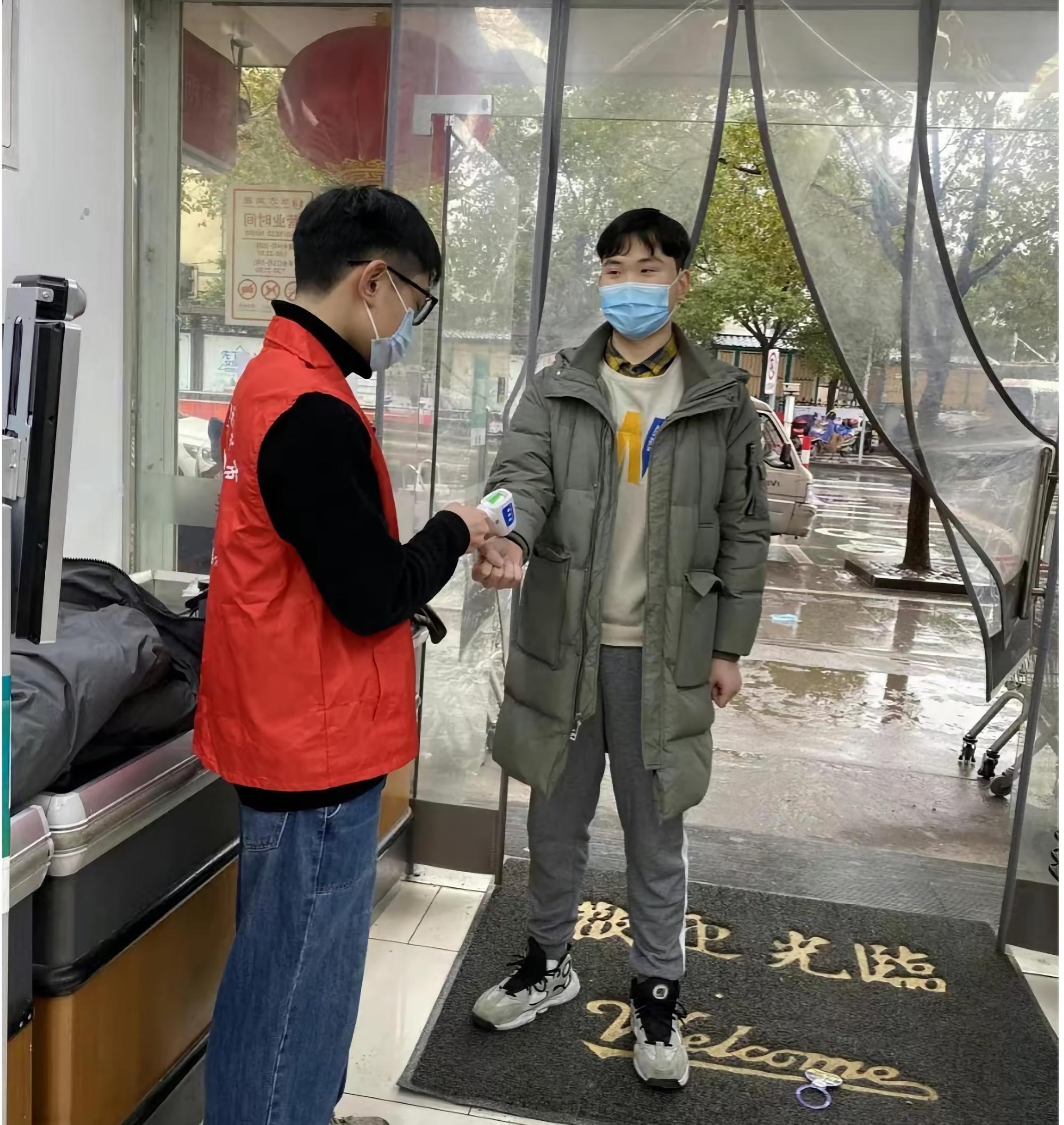 活动期间,蒋知航在服务站现场主要负责核酸检测人员的健康测温工作,在值守期间,他不断提醒来往人员注意佩戴口罩,逐一检查来往人员通信大数据行程卡信息,询问核实返乡人员14天内是否到达或途径中高风险地区,并引导返乡人员保持间隔有序排队。蒋知航表示,测温、扫描二维码、引导服务,每一步都不可大意,十分能锻炼个人的细心与耐心。