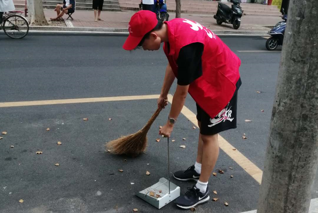7月22日上午,志愿者们抵达现场时,发现路面、街道居民门口以及小学旁都积累了很多树叶以及一部分垃圾,这会影响当地居民的生活环境及创建及评选卫生文明城市。看到这一幕,志愿者们纷纷借来扫把和垃圾桶,拿起工具开始清理路面卫生,打扫堆积的树叶。