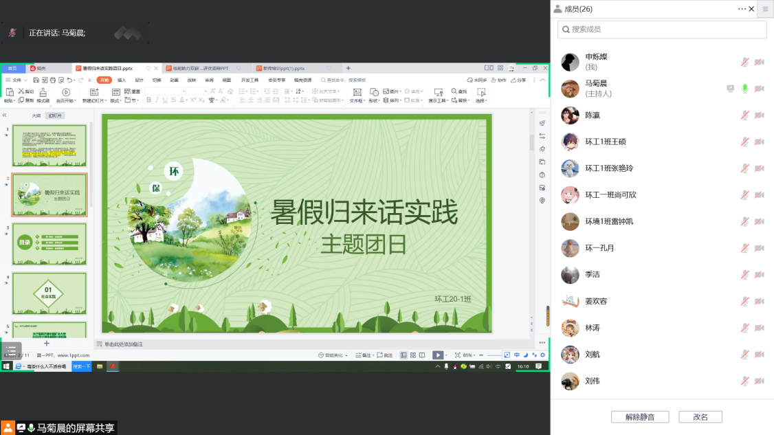 环工20-1班于线上开展“暑假归来话实践”主题团日活动。