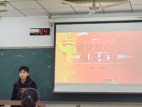 测绘类22-4团支部于博4C-304开展“请党放心,强国有我”为主题团日活动。