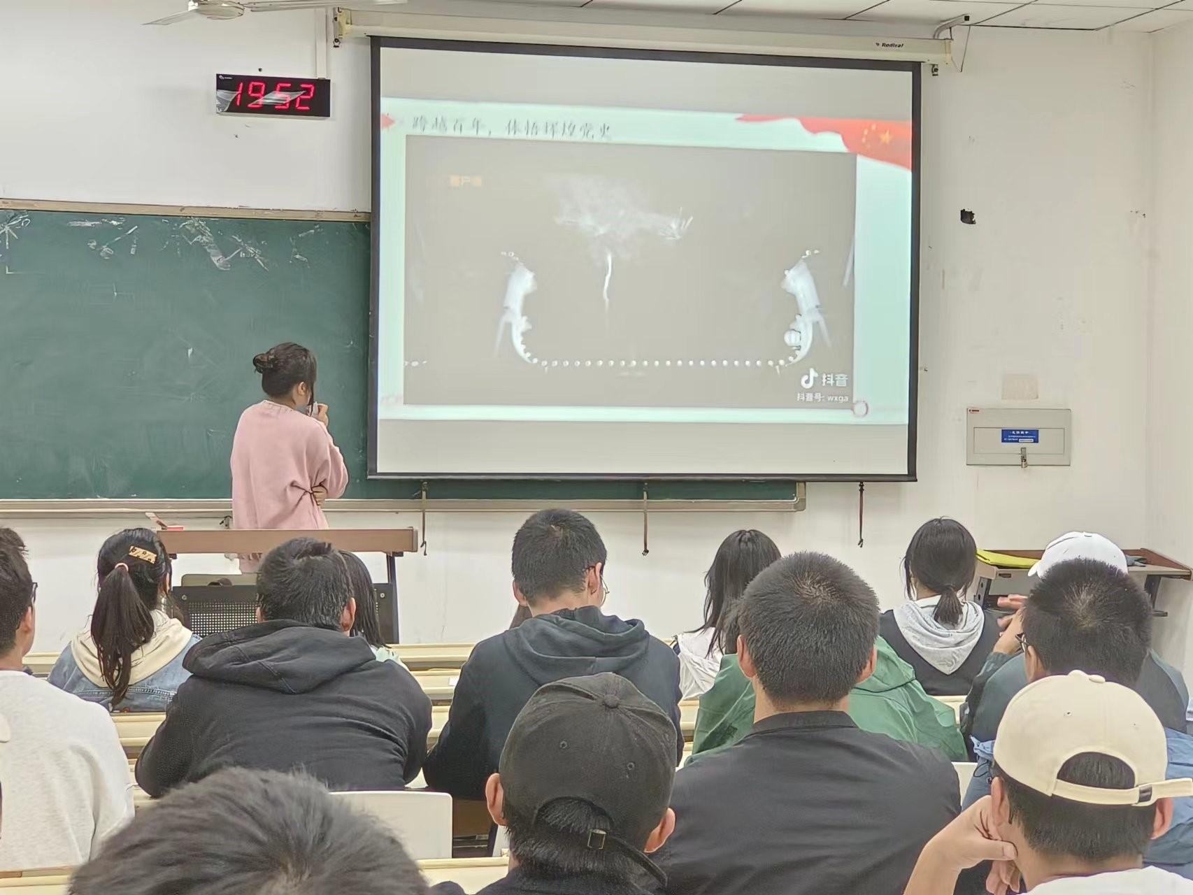 活动伊始,全体同学合唱中国共青团团歌,团支书姬甜乐对本次团日活动的主题“请党放心,强国有我”进行了详细介绍并带领同学们回顾百年党史。接着,姬甜乐同学带领同学们了解新时代中国发展面临的挑战与际遇,使大家明确了青年人的责任和使命。之后,全班同学一起观看习近平总书记在党的二十大报告中对青年人的寄语视频。同学们踊跃发言,积极作答,站在新的历史方位上提出自己对于青年责任担当的独特见解。最后,姬甜乐同学带领同学们进行宣誓。