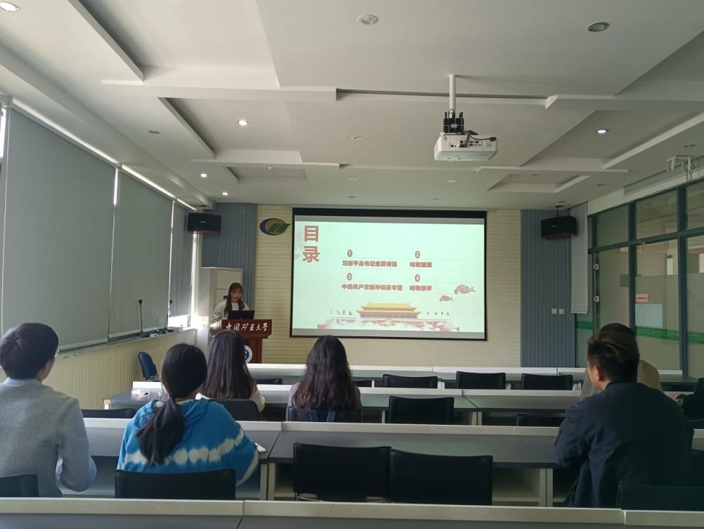研究生会2022-2023年度第六期理论学习活动于环测楼A512顺利举行。本次理论学习活动的主讲人为林朝禹同学,学习的内容主要分为习近平总书记重要讲话、时政速递、中国共产党精神谱系专题和时政热评四个部分。在理论学习结束后,主讲人带领大家一起学习了有关国家保密安全工作的重要性等知识,丰富了同学们有关国家保密安全工作的知识面。