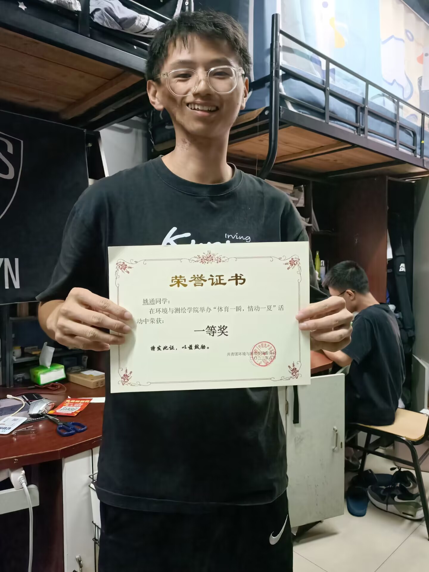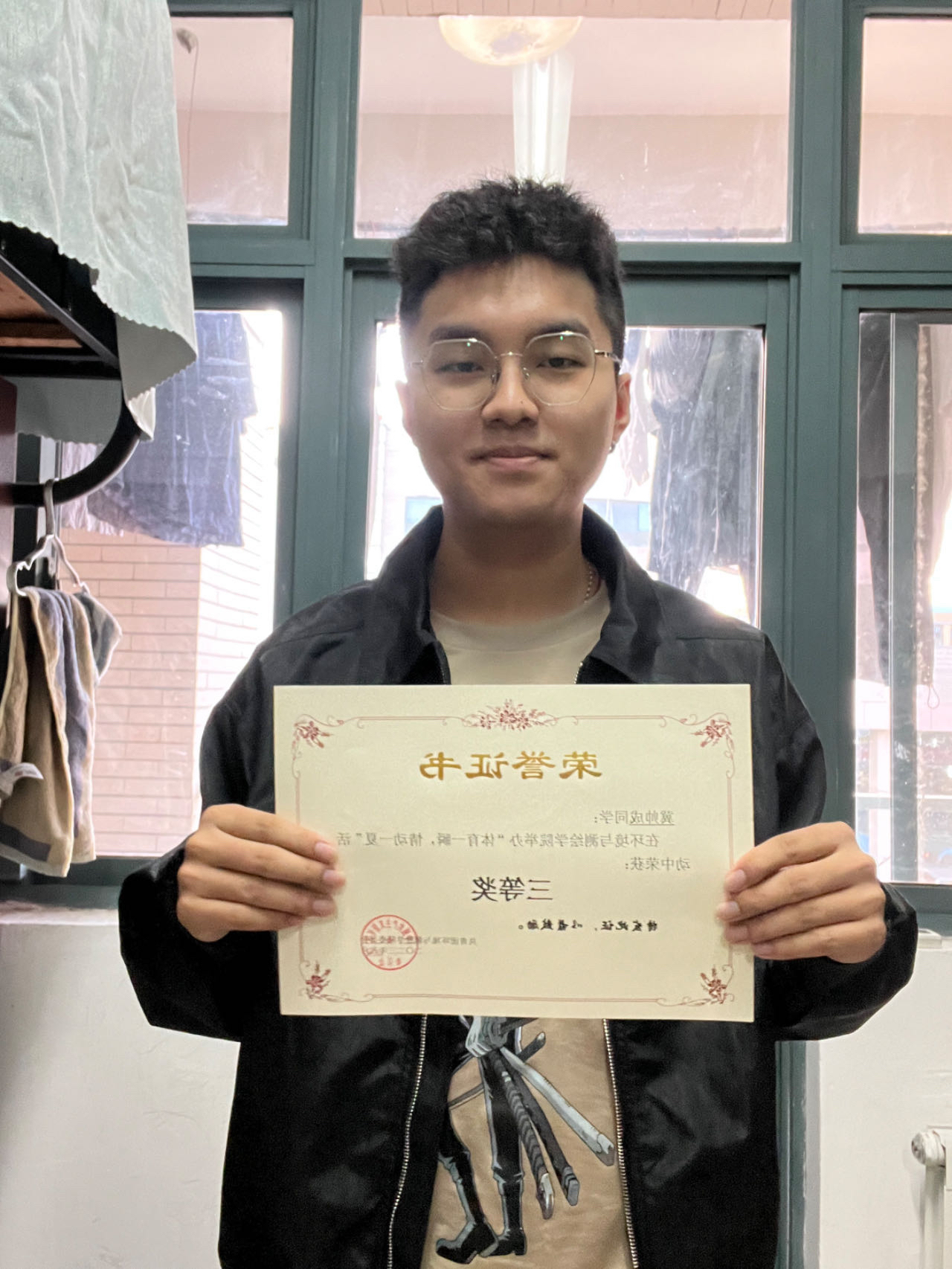 姚通同学获得了一等奖、惠智杰同学获得了二等奖、冀帅成同学获得了三等奖。