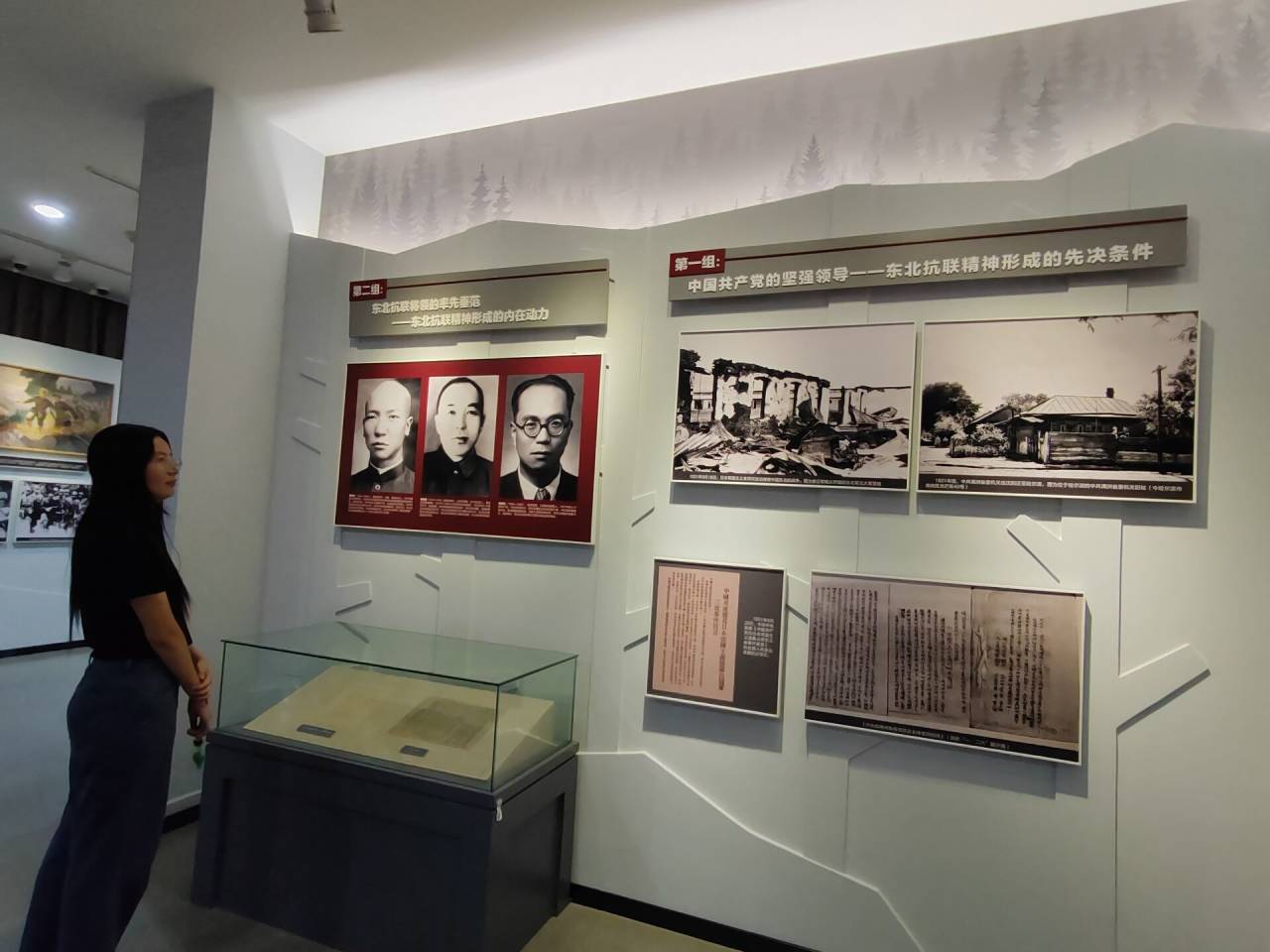 东北抗联博物馆以展示英雄的个人事迹为主。刘恩慧同学共参观了场馆内的四个部分:第一部分为抗联概况,包括抗联情况综述、历史背景介绍、组织建制系统、重点活动区域等;第二部分为抗联斗争史实,包括东北及辽宁抗日烽火、各地主要义勇军兴起、抗日统一战线形成、抗联主要战役等;第三部分为抗联英烈形象展馆,包括抗联在东北特别是辽宁地区的主要将领、人物画像、塑像、蜡像等;第四部分为纪念性展厅,主要是领袖题词题字、抗联遗址纪念碑、东北抗联书籍、影视作品及纪念活动等。
