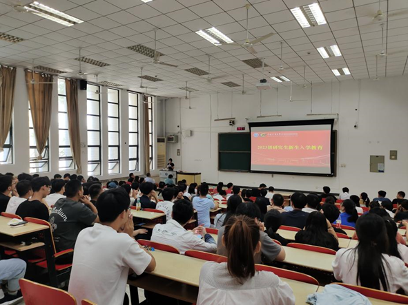 科研副院长王潜心、研究生辅导员杨政军、王奕骅出席宣讲会,2023级研究生新生240多人参加宣讲会。