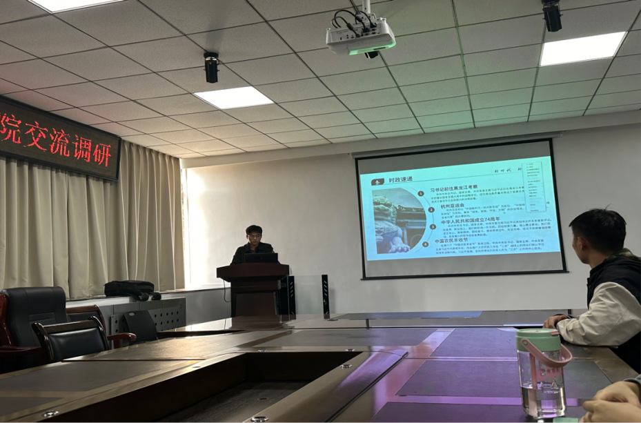 在中国共产党人精神谱系专题中,郝传迟给同学们分享了西柏坡精神。他提到西柏坡精神最深刻的内涵就是在历史大转折的过程中,鲜明地提出了历史性的“天问”,并开始求解历史性的“天问”,努力作出自己的回答——“两个务必”。时政速递环节中同学们学习到:习总书记在黑龙江考察时强调要牢牢把握在国家发展大局中的战略定位、杭州亚运会的办会理念及办会原则等知识,随后与会成员就相关话题展开讨论。