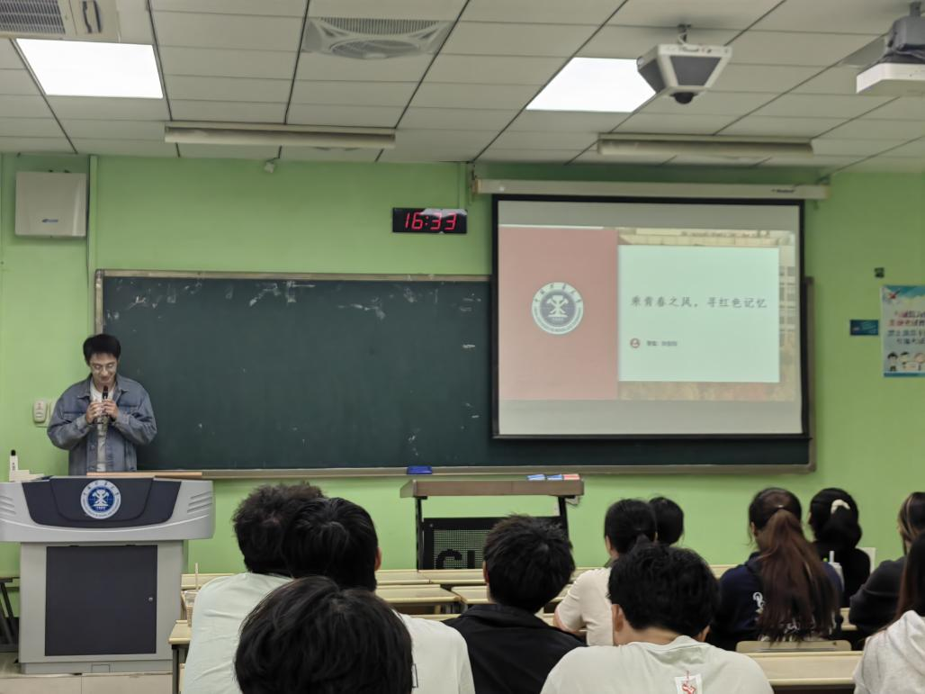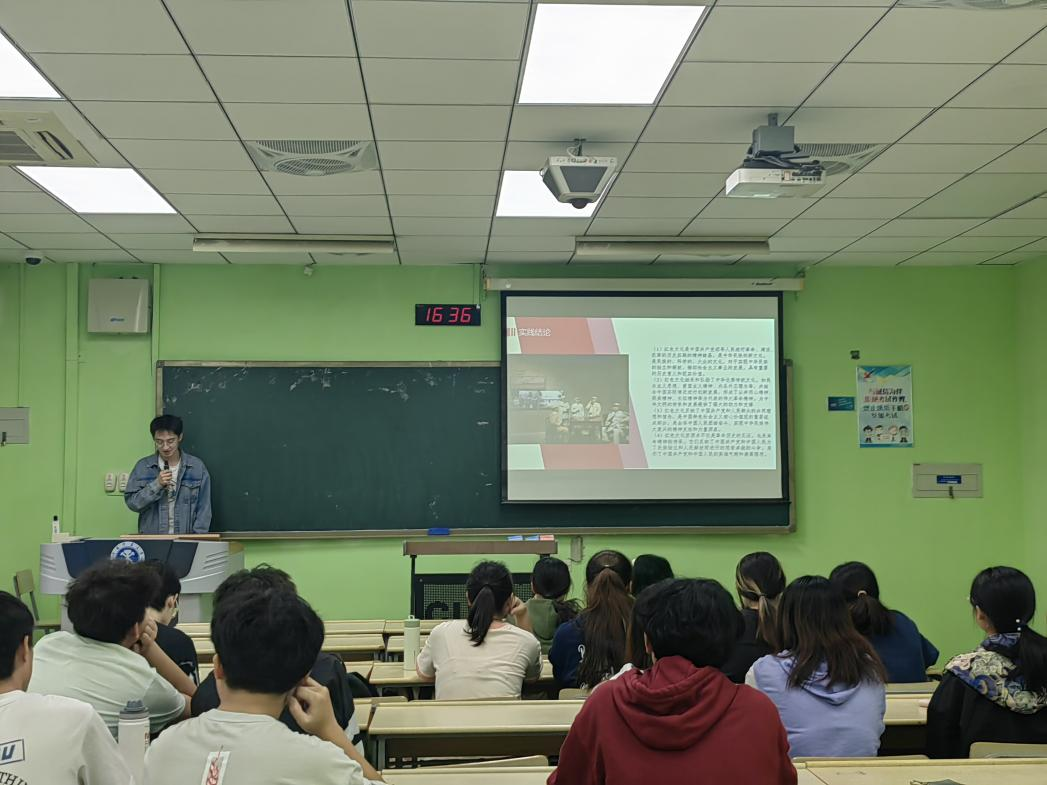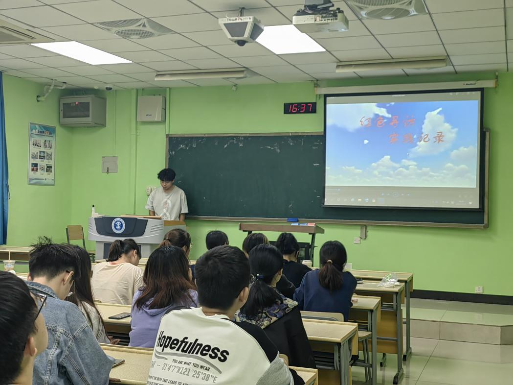 本次活动以引导青年学生在实践中受教育、长才干、做贡献,增强学生的社会和历史责任感为目的。首先,由刘培剑同学分享自己暑假期间在矿大附近的望城村进行“彩笔绘乡”社会实践的经历与成果。接下来,张智翔和石钧雷两位同学也相继上台分享了实践经历,张智翔同学在暑假期间运用GIS技术和统计方法,对江苏省红色文化资源的空间分布特征、区域差异和形成因素进行了定量和定性的分析,并将实践成果制作成江苏省红色文化资源地图故事,以此来传承红色精神;石钧雷同学暑假期间去了山西长治和太原两地,先后前往太原文瀛公园、黄坡烈士陵园以及长治八路军太行纪念馆进行参观展览,感悟红色历史。通过三位同学的分享,可以感受到他们在暑假期间均获得了一次意义深刻的体验。最后,由李亚楠同学对本次活动进行总结。