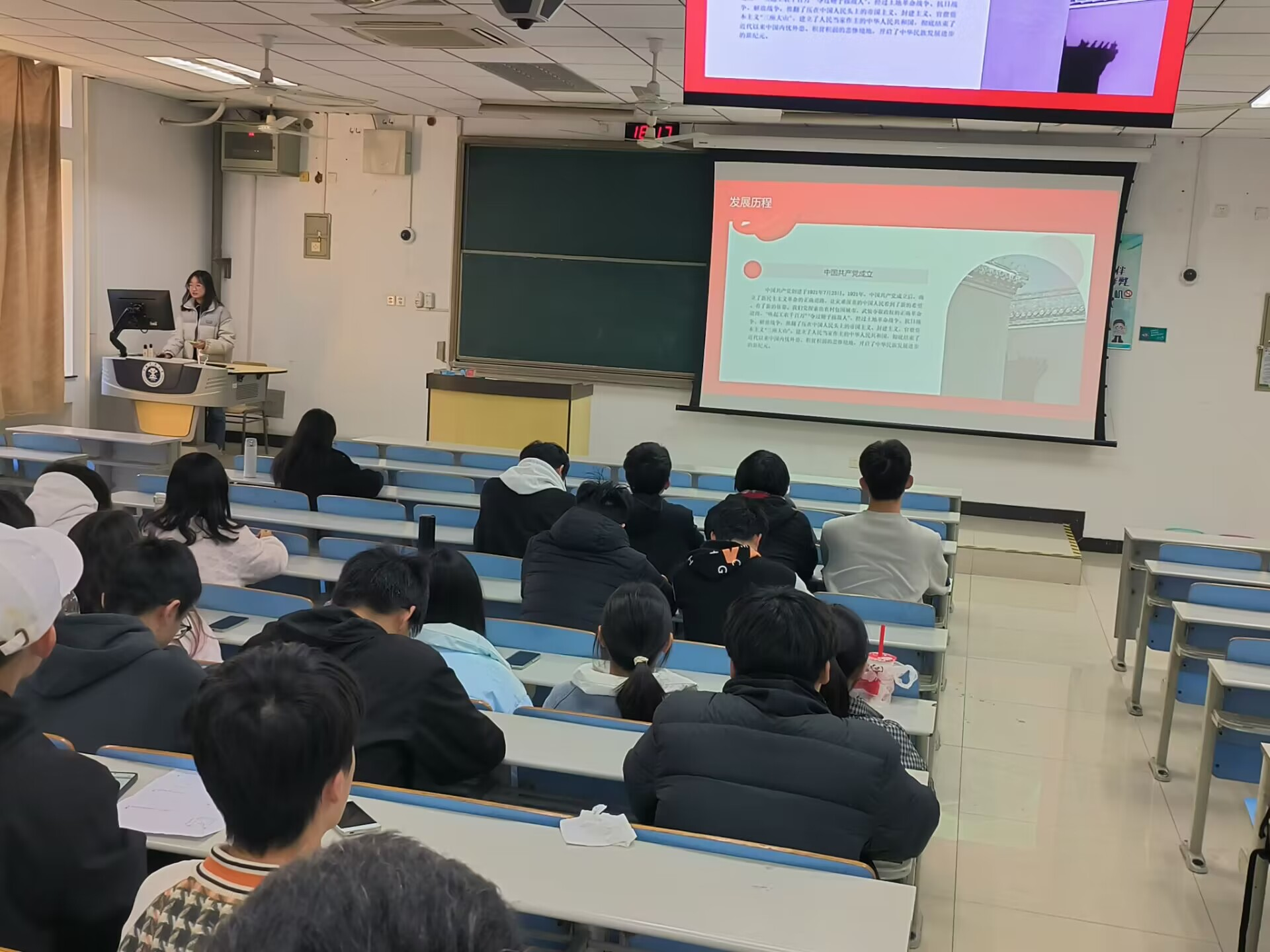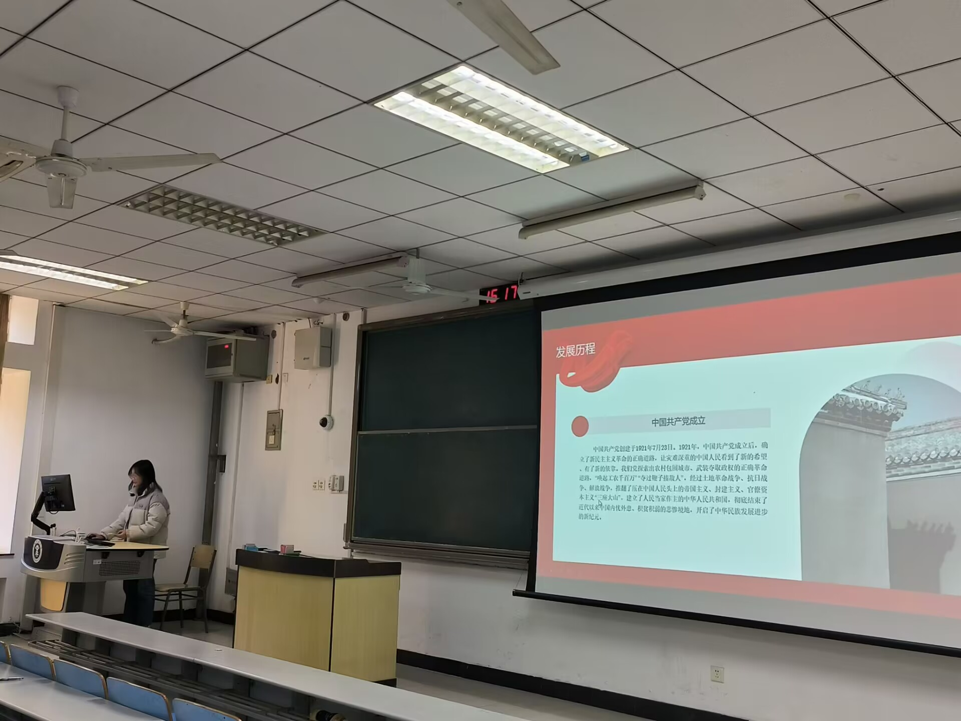 活动伊始,团支书丁乐心同学介绍了本次活动的主题。她提到,学习党史、国史是坚持和发展中国特色社会主义、把党和国家各项事业推动前进的必修课,历史是最好的教科书,也是最好的清醒剂,党的每一段革命历史,都是一部理想信念的生动教材。在活动过程中,她选取了几次具有重要意义的党代会,依此讲述了中国共产党百年间的发展历程。接下来,她介绍了几个与党有关的知识,例如党的性质、党的宗旨、党代会的组织结构等。除此以外,丁乐心同学介绍了百年来中国共产党取得的历史成就,以及党在带领人民建设国家的过程中所形成的伟大精神。对此,何晓斐和于瑶同学也发表了自己的见解。活动最后,丁乐心同学进行了总结,团日活动圆满结束。