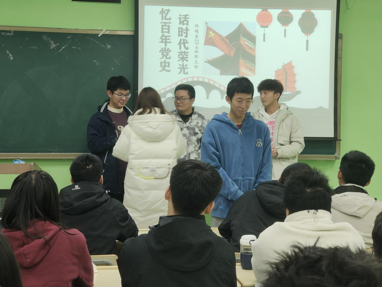 环境科学与工程类23-4班团支部在博四C-306教室开展了以“忆百年党史,话时代荣光”为主题的团日活动。此次活动由团支书石晓慧组织,宣传委员申园园、组织委员李浩源协助完成。