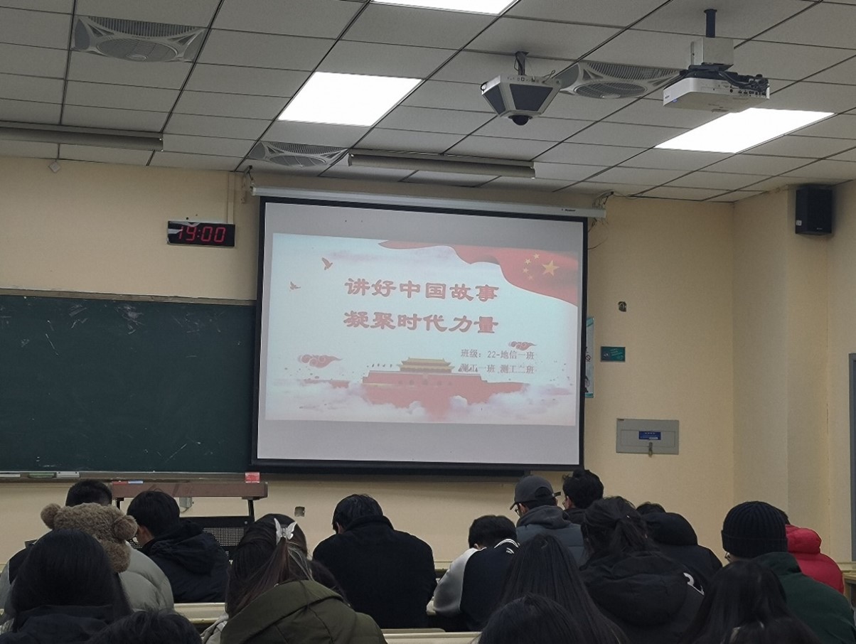 在十九大报告中,习近平总书记强调,要“推进国际传播能力建设,讲好中国故事,展现真实、立体、全面的中国,提高国家文化软实力。”为了加深广大大学生对中国故事的理解与认识,激励大家讲好中国故事,激发各位同学的使命感,12月29日晚19点,地理信息科学22-01班团支部联合测绘工程1班、测绘工程2班的团支部于博学四号楼c104开展了“讲好中国故事,凝聚时代力量”主题团日活动。