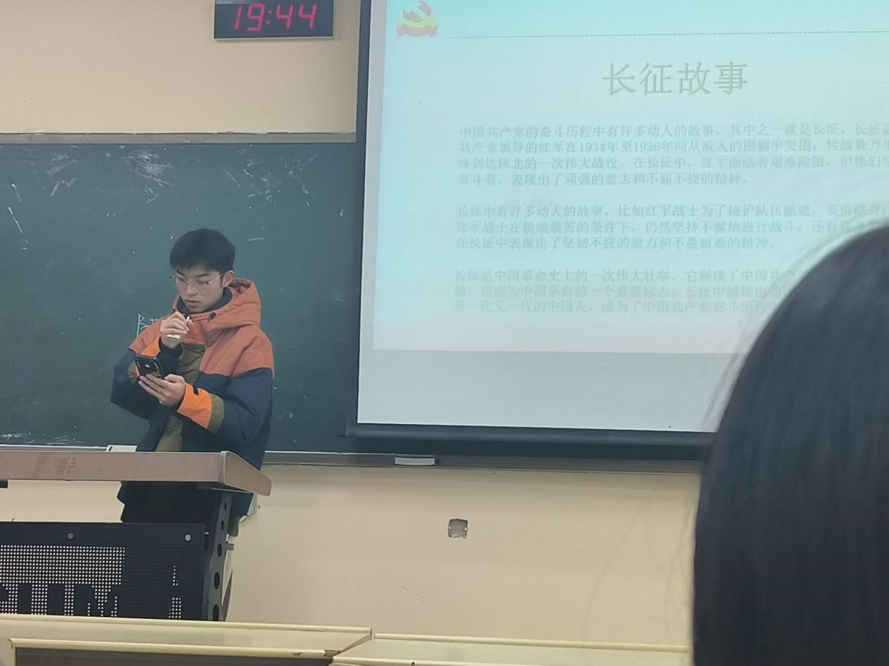本次活动由组织委员崔健飞主持。活动开始,崔健飞同学首先介绍了中国故事丰富多彩的题材类型——神话传说、民间故事、历史趣闻、革命先辈的事迹以及许多普通仍所创造的感动人心的故事。他向大家分享了梁山伯与祝英台的爱情故事,赞美了他们勇于向封建社会挑战的勇气与精神。接下来蒋小龙同学分享了“感动中国2022年度人物”陆鸿的故事。陆鸿虽然患有脑瘫,却从未失去对生活的希望,不仅自己努力工作,还帮助了其他身患残疾的人一同创业,他自强不息的精神值得我们敬佩与学习。最后同学们一起观看了记述华坪女高校长张桂梅事迹的视频,并由于瑶同学发表了自己的看法。活动圆满结束。