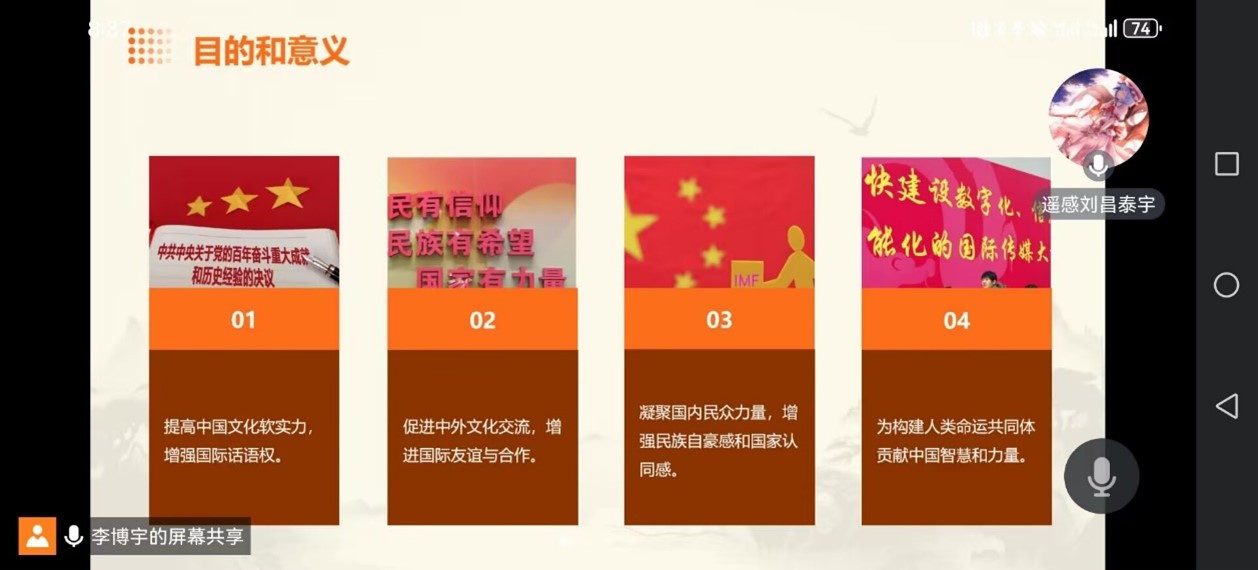 22级遥感一班在1月14日20:05于线上开展“讲好中国故事,凝聚时代力量”团日活动。此次活动由团支书张月琪组织,班长李博宇、组织委员刘昌泰宇、宣传委员刘娜合作完成。