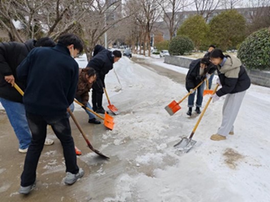 党员陈诗琳,发展对象李晶晶,积极分子王鹏等8位同志以及环卫人员积极响应号召,投入到扫雪除冰行动中。党员们聚在一起,有序领取了扫雪工具,前往扫雪区域,在寒风凛冽中挥铲、破冰、铲雪、清地,相互配合,对环测直播露点