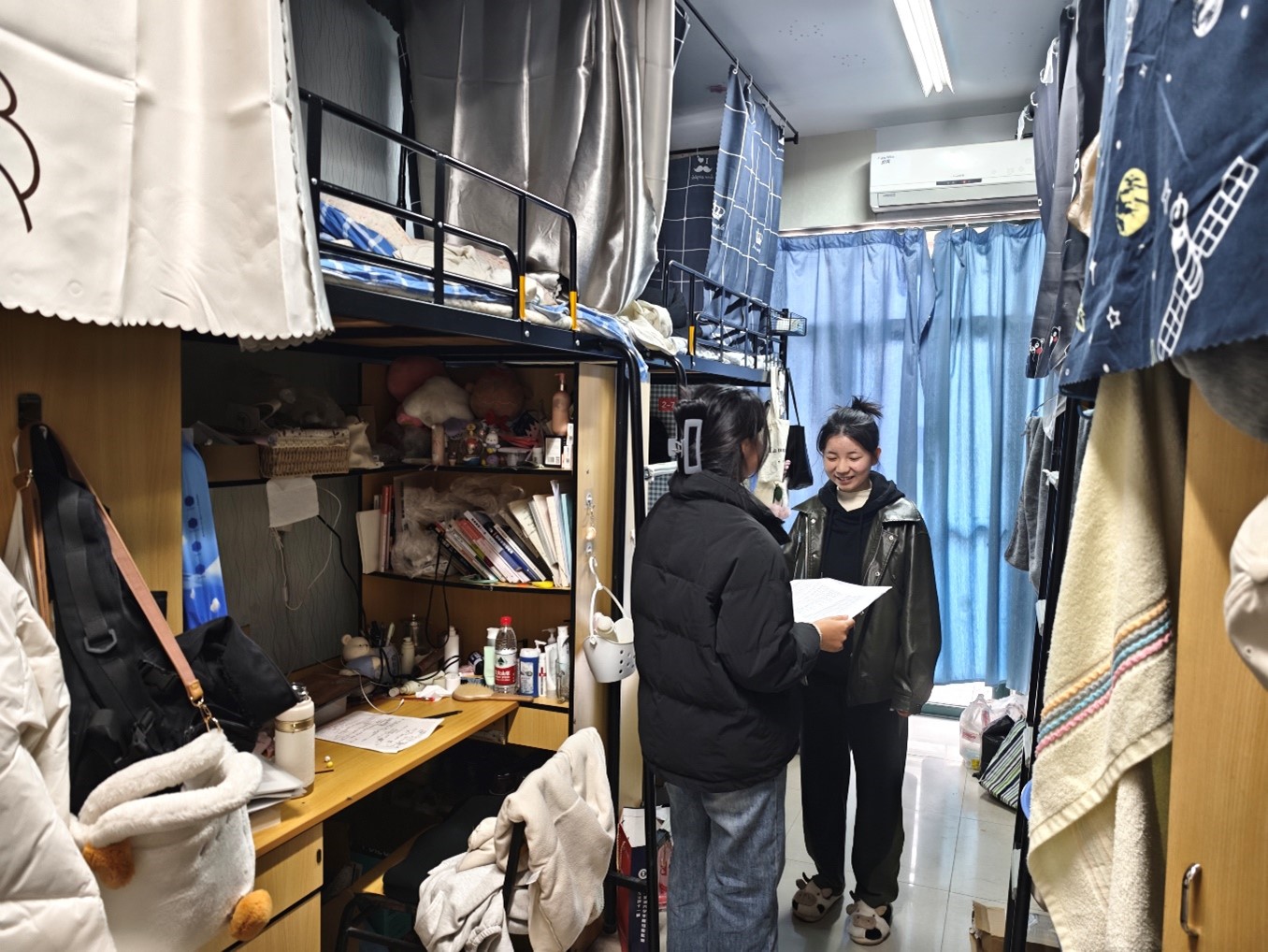 走访过程中,详细了解每位同学的学习生活情况,提醒同学们要互帮互助互爱,在学习上比学赶帮超,好学力行,学有所成,不负韶华;要常态化做好宿舍清洁卫生,坚持每天通风保持室内空气清新;要强化安全意识,提升安全防范能力,严禁使用存放违章电器,严禁私拉电线网线,严禁在宿舍内给电动车电池充电,养成离开宿舍切断电源的习惯,严禁在宿舍抽烟,阳台杂物要及时清理,全力确保宿舍安全。杨政军老师还友情提醒同学们,如果在学习生活中遇到困难和问题,欢迎向辅导员老师及时反映,只要是关乎学生合理合法权益、安全健康等方面的问题,直播露点