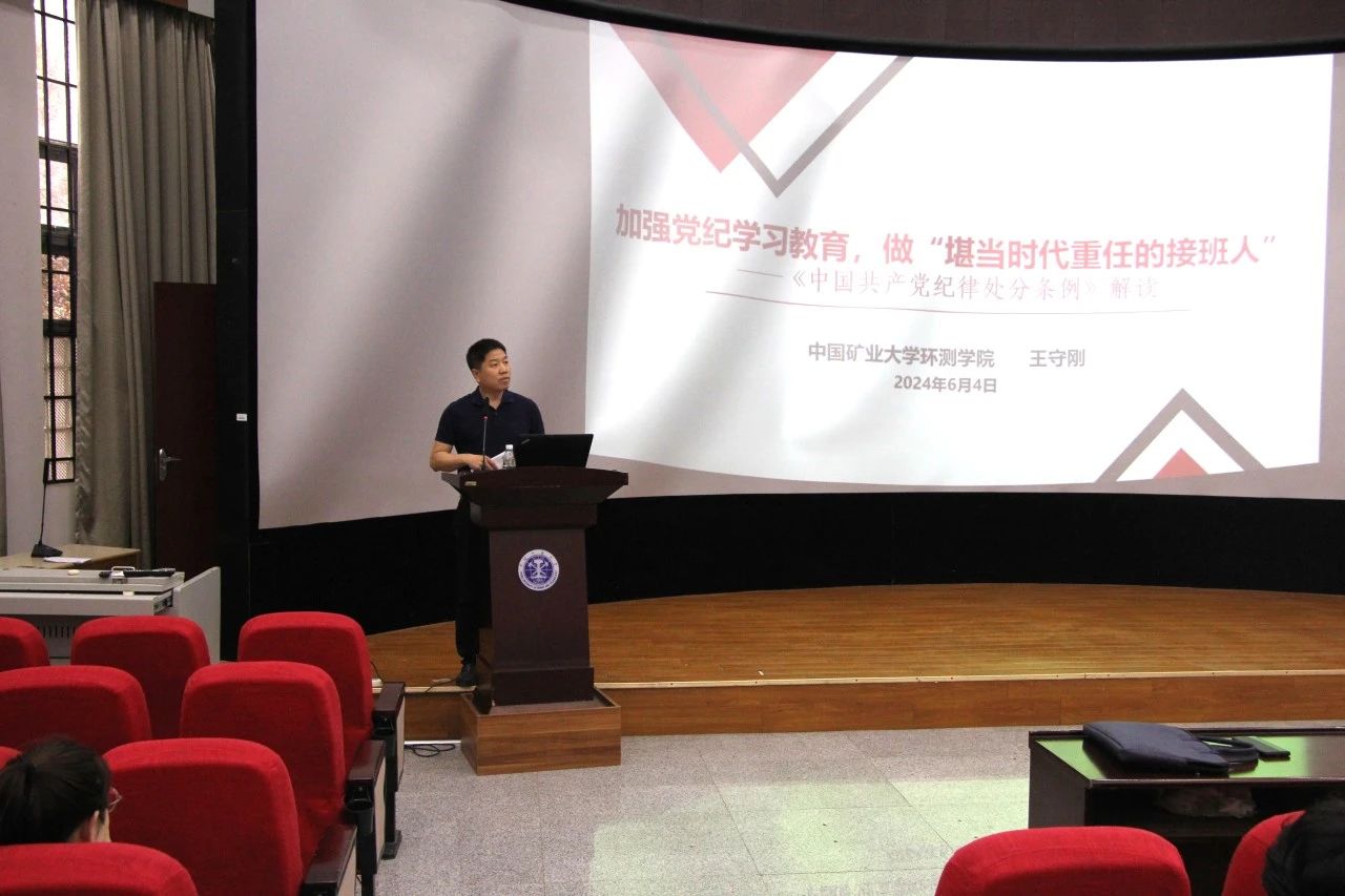 在环测楼B109开展以“加强党纪学习教育,做堪当时代重任的接班人”为主题的毕业生党课。党课由直播露点