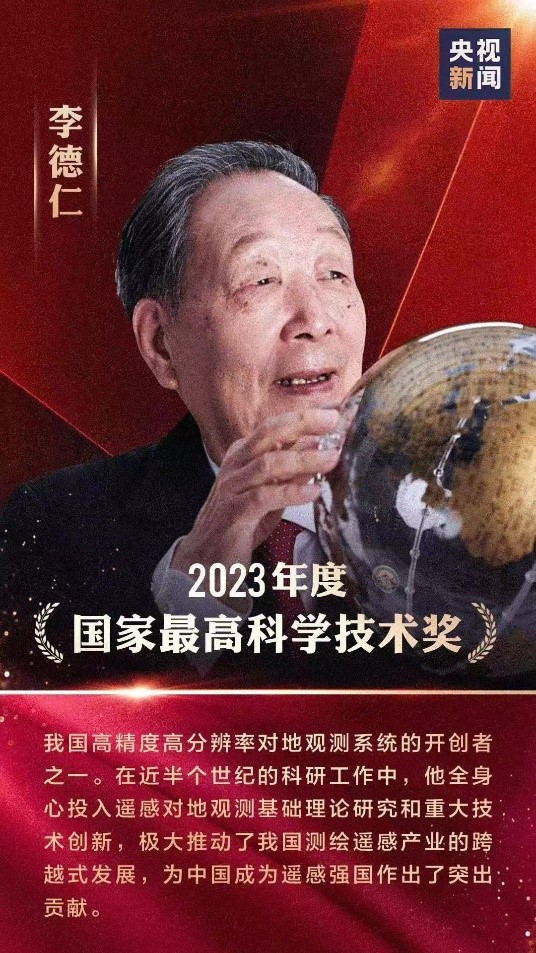 6月24日,2023年度国家最高科学技术奖在京揭晓,李德仁院士获得中国科技界崇高荣誉。